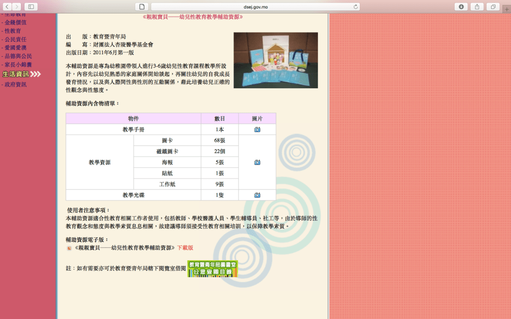 網站介紹: http://www.dsej.gov.mo/cem/gender08.php?genderis=gender_material