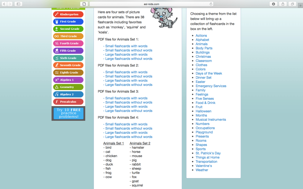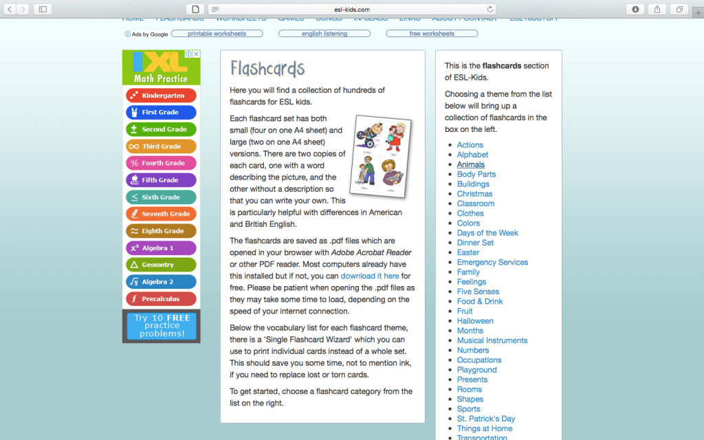 網站介紹: http://esl-kids.com/flashcards/flashcards.html