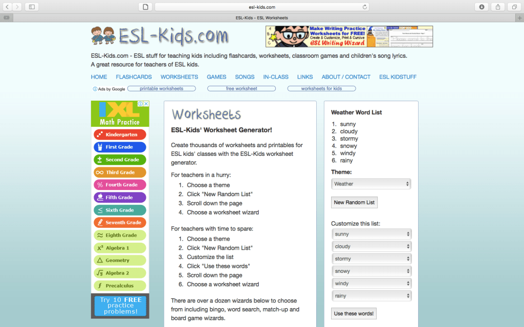 網站介紹: http://esl-kids.com/worksheets/worksheets.html