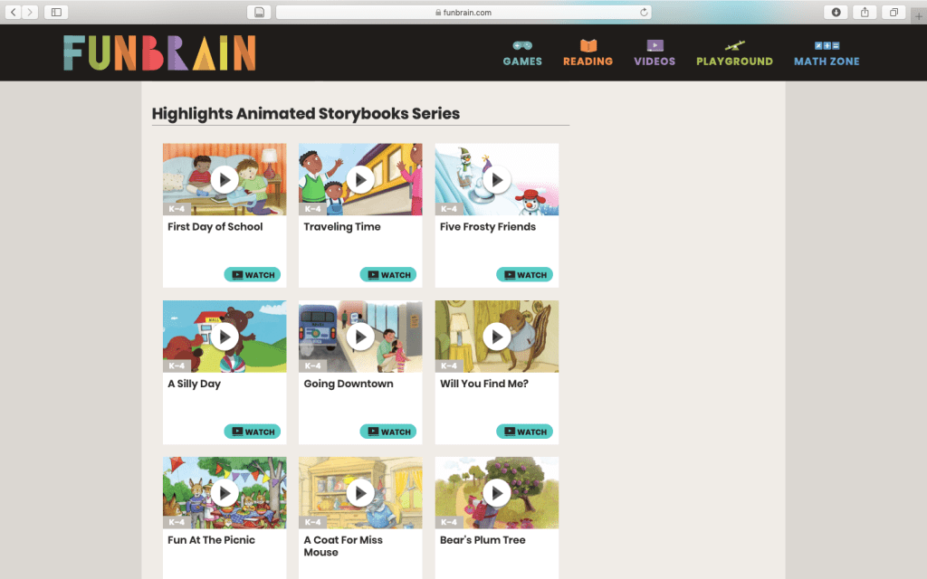 Fun Brain: https://www.funbrain.com/videos/highlights-animated-storybooks/lets-go-fishing