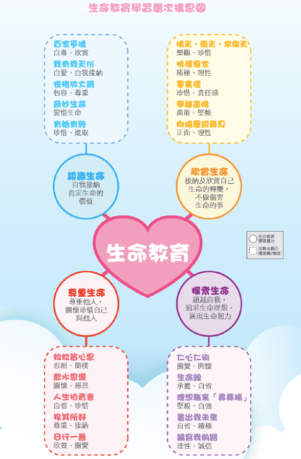 在眾多教材中,我選擇了香港教育統籌局生命教育教材裡面的生命教育構思圖和大家分享。