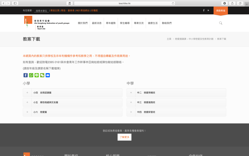 香港青年協會戀愛通識課-中小學戀愛及性教育計劃: http://teachlike.hk/learntolove/teachingmaterials/