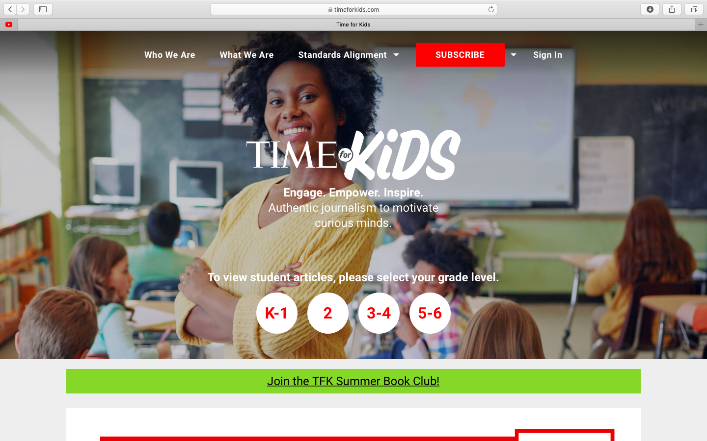 相信大家都認識Time Magazine 時代雜誌,但應該較少人知道時代雜誌是有兒童版。今天,我要介紹的是Time For Kids 時代雜誌兒童版,網站有免費英文文章,讓孩子學習英文。推介原因有四:1) 文章有朗讀功能,孩子可以學習英文發音; 2)文章有重點字詞,讓孩子對詞彙加深理解; 3)文章分成不同級別,適合不同年紀的孩子; 4) 文章分門別類,讓孩子可以學習多方面的知識。