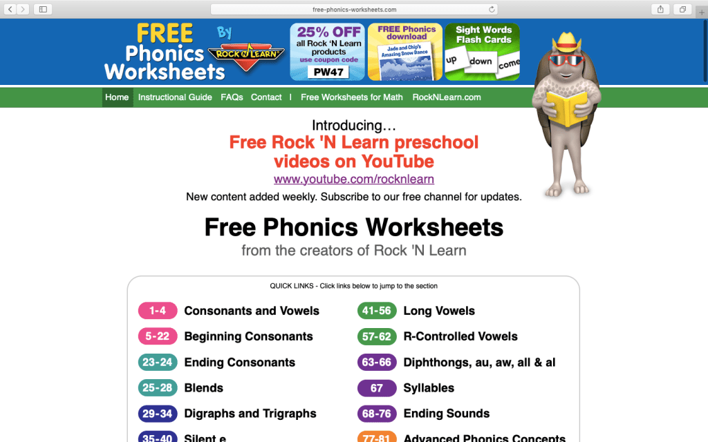 這已經是我第三次介紹免費的phonics 資源。對於家長而言,學phonics的難度在於自己都不肯定英文發音,所以有時候都不敢教孩子。我記得第一次介紹了由英美作者設計的免費phonics書,但有家長反映就是不會讀,所以擔心幫不了孩子。於是第二次,我就介紹了美國拼音平台(https://learnbettereducation.com/2019/05/08/a-8/),對家長和孩子的幫助就更大。今天,我再找來一個美國網站,裡面有phonics 的工作紙免費下載,並附有答案,而且這個網站還設有youtube 頻道讓孩子學phonics發音。孩子學習phonics 就沒有難度!