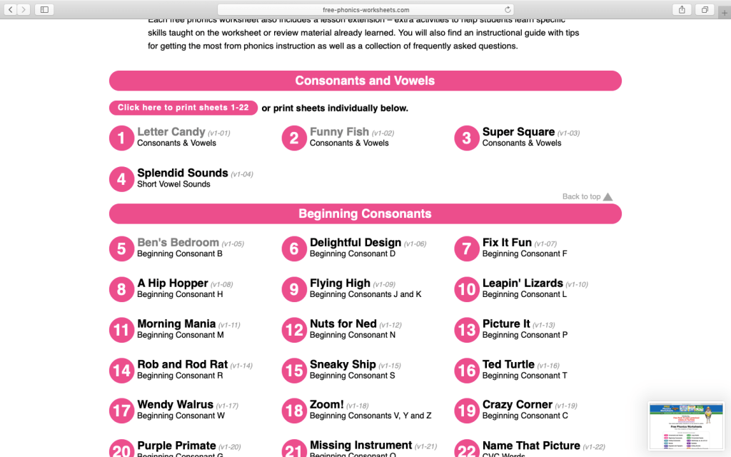 Free Phonics Worksheets(工作紙):https://www.free-phonics-worksheets.com/index.html