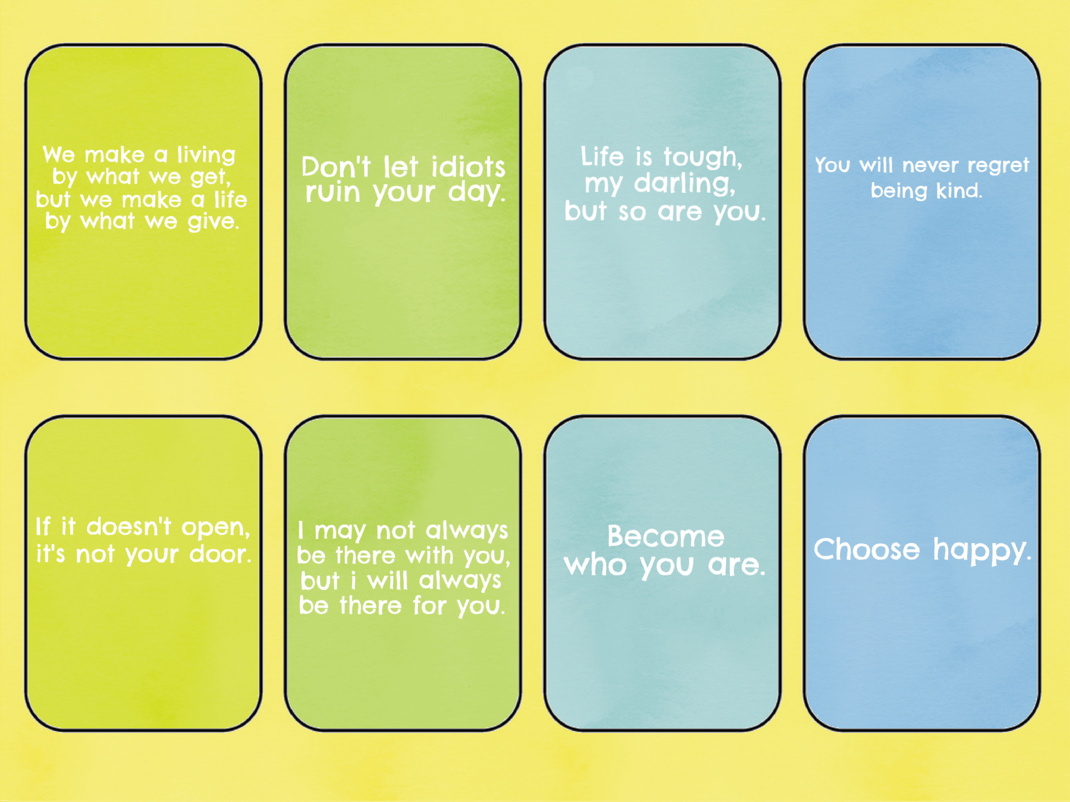 教材共有16張鼓勵金句卡。請用較厚的白紙列印(180gsm或以上)。