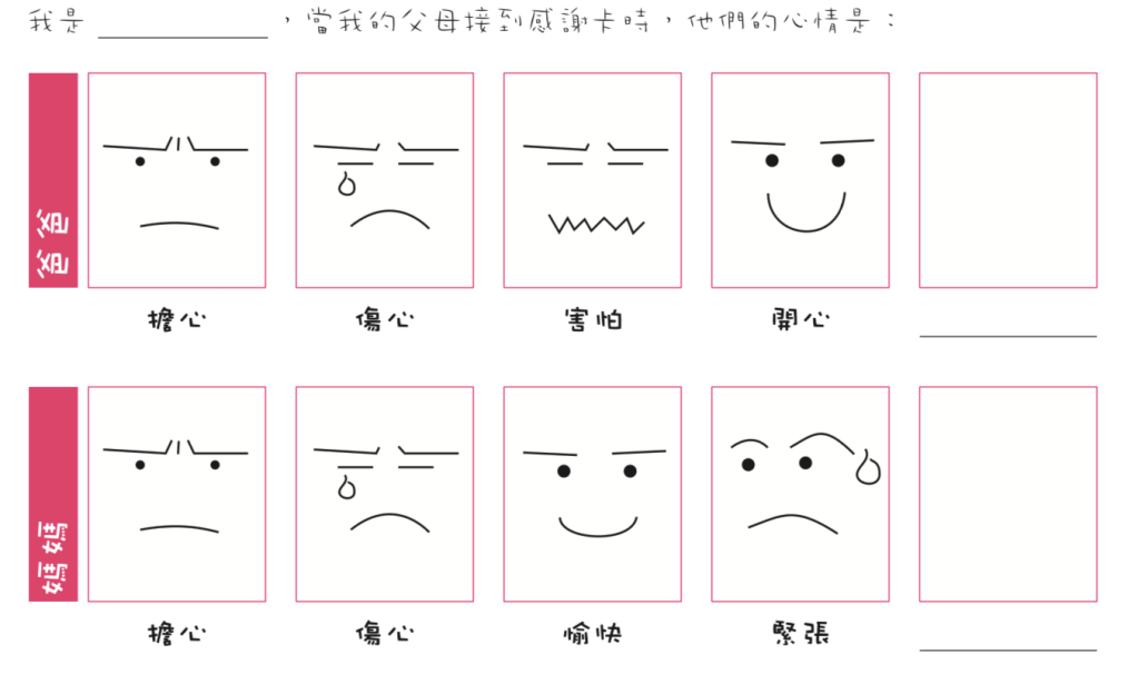 認識生命及欣賞生命-感謝父母把自己帶到這個世界/理解父母收到感謝卡的心情