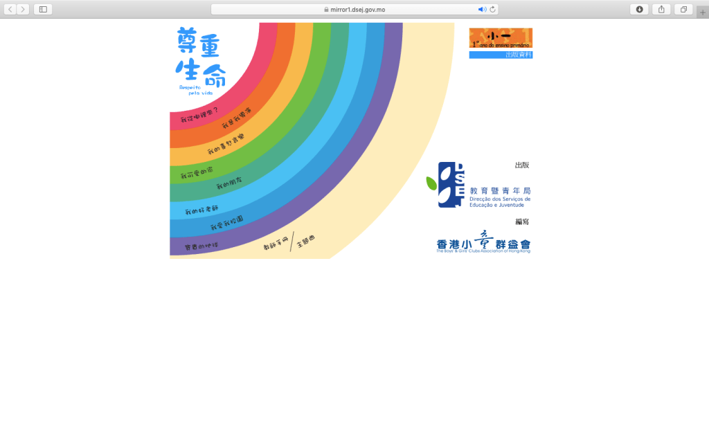 澳門教育暨青年局- 尊重生命教育教材: