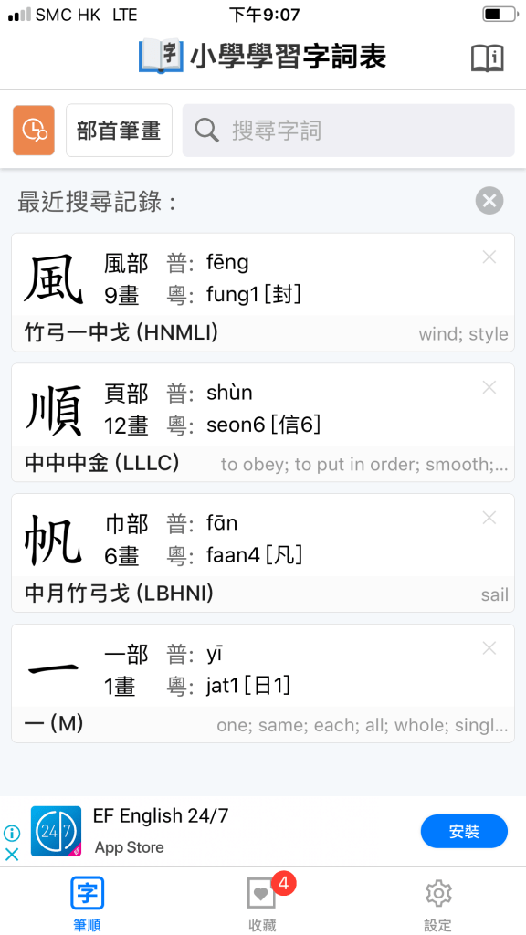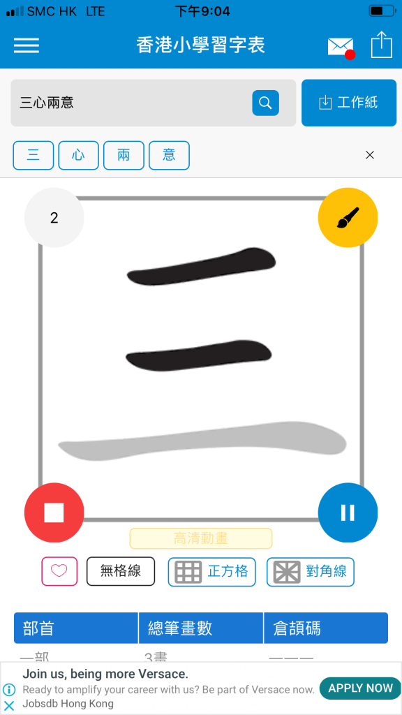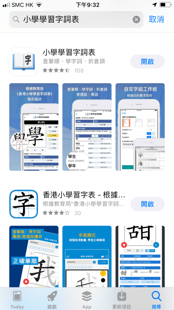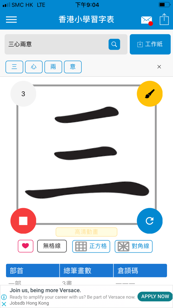 現在會先介紹第一個app: 香港小學習字表 (最大好處:可以學筆順及寫筆順)