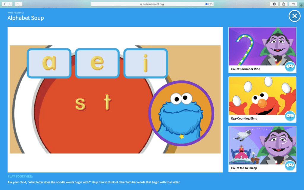 芝麻街 Sesame Street: https://www.sesamestreet.org/games