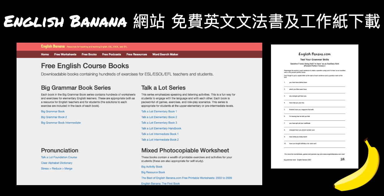 網站名稱: English Banana (由於這個網站的教材,有部分較適合老師於課堂使用,所以家長們可看我下面的推介使用,才進入網站)