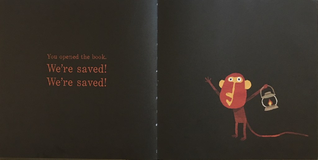 這真是一個很聰明的做法,整本書一開始都是黑色的,正因為孩子打開了這本書,光就投了進來,於是就看見了黑暗中有一雙眼睛。