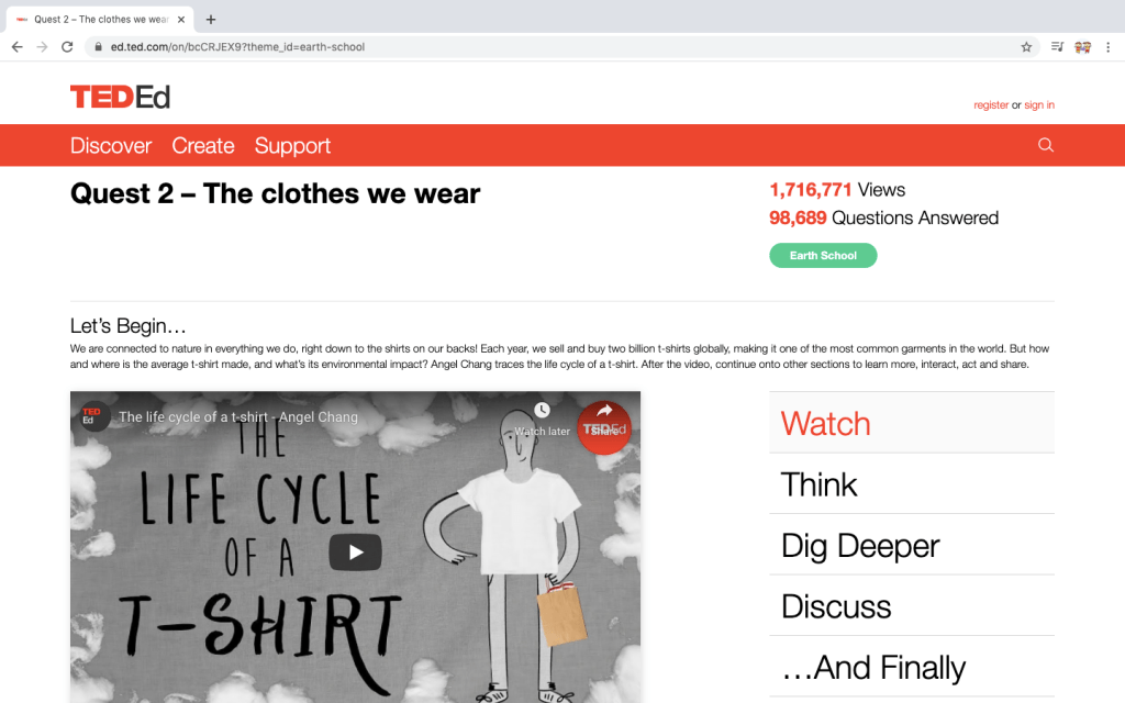相信大家對TED都很熟悉,但不知道大家是否知道其中的TEDEd有一個地球學校項目,讓孩子透過30天30段學習短片的方式,認識一些與自然和環境有關的有趣課題,例如一件T恤的生命週期、為何城市需要種樹、究竟海洋有多大等。孩子完成課程後還能免費獲得電子證書。我推介這個網站有三個原因:1. 短片製作精美用心,且具專業性,獲聯合國及國家地理雜誌等支持,以一個有趣及嚴謹的角度解答了孩子日常生活中的問題;2. 短片有多種語言翻譯,輔助孩子學習;3.短片配以小測驗,是一個學習英文聽力及理解能力的好教材。
