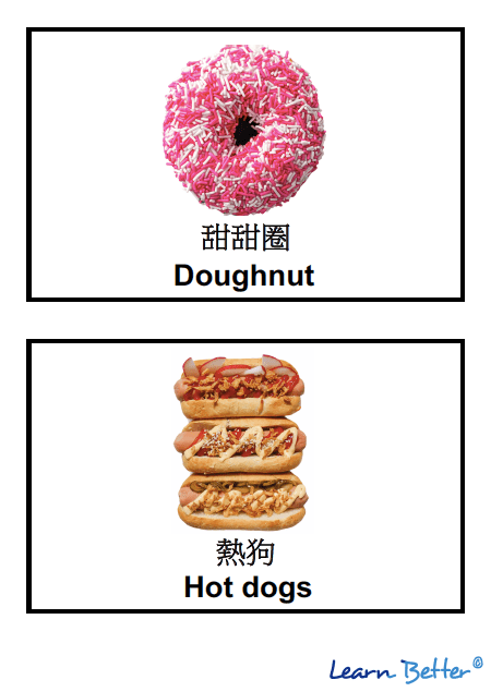 由上兩個月開始,陸續推出英文學習詞彙卡。第六個推出的系列,就是小食英文詞彙卡。大家只需要用比較厚的白紙把教材列印出來,或是過膠,就可以與孩子於家中使用。由於我們有來自不同地方的讀者,所以詞彙卡,會有三種版本,分別是繁體中文及英文對照、簡體中文及英文對照、純英文。由這系列開始,還加入英文發音短片,讓孩子可以邊聽邊學!
