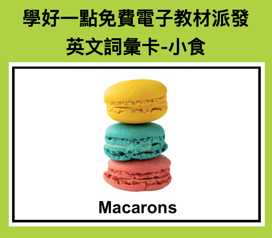由上兩個月開始,陸續推出英文學習詞彙卡。第六個推出的系列,就是小食英文詞彙卡。大家只需要用比較厚的白紙把教材列印出來,或是過膠,就 … 繼續閱讀 免費電子教材派發:英文詞彙卡-小食